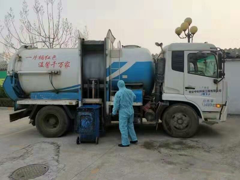 他首先對收運(yùn)車輛車況進(jìn)行仔細(xì)檢查,再進(jìn)行車輛全身消毒,然后開啟了一天的工作。