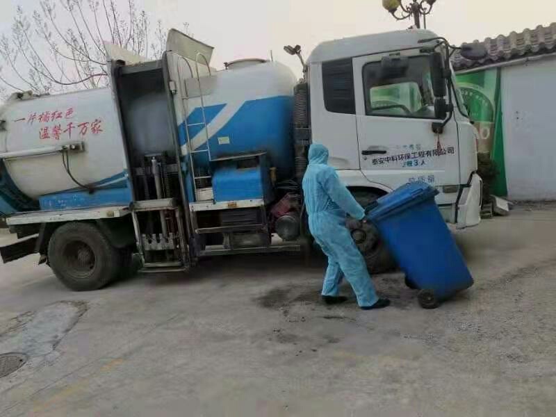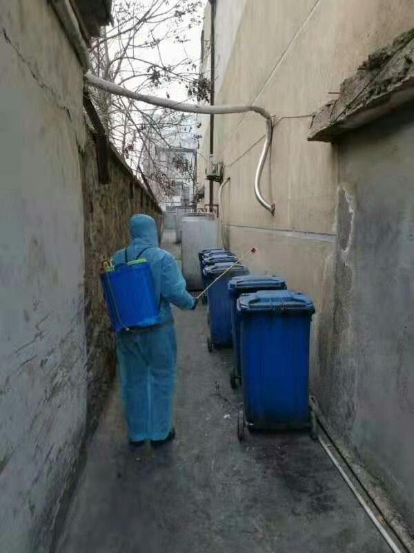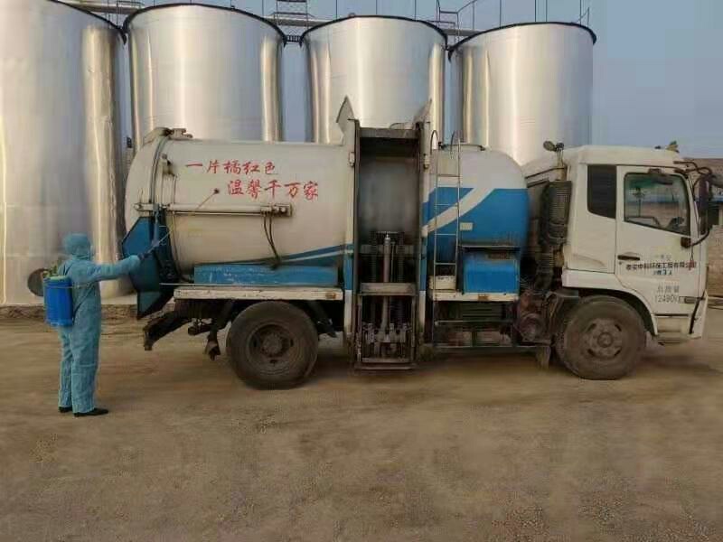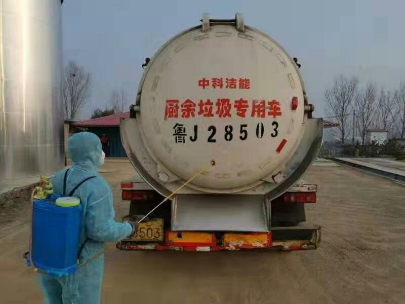 到達(dá)收運(yùn)點(diǎn)后,對餐廚垃圾桶進(jìn)行消毒處理。
