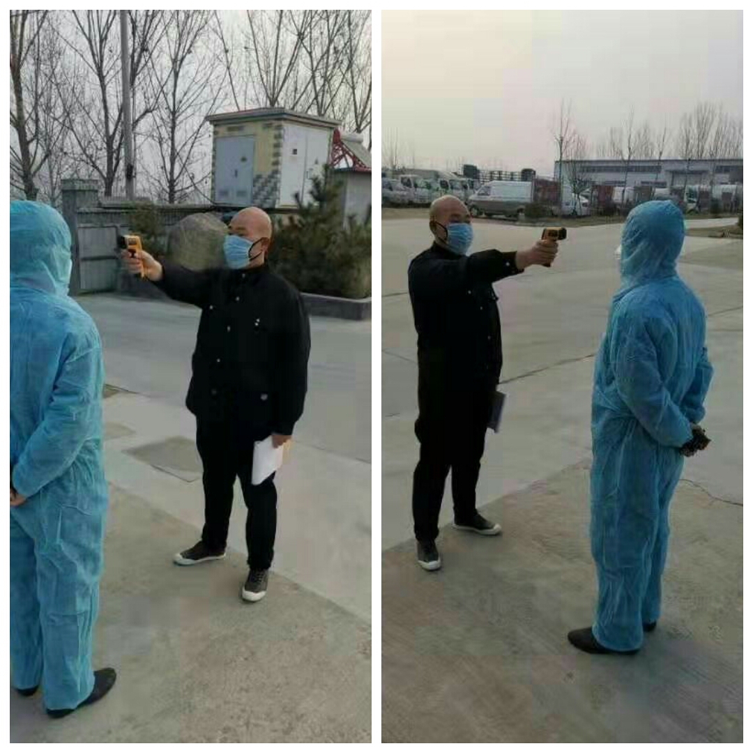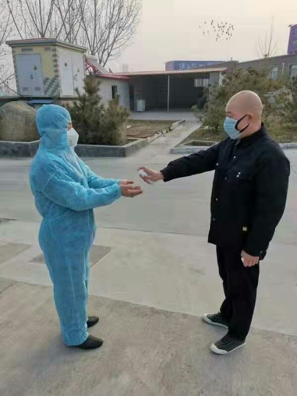 六點(diǎn)多,他到達(dá)廠區(qū)的第一件事就是換好防護(hù)服,測量體溫,并填寫登記表。